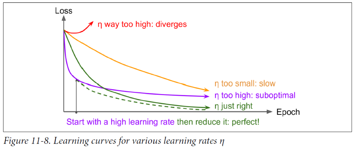 - 하이퍼 파라미터 \({ \eta }_{ 0 }\)과 \(r\)을 튜닝 해야한다.