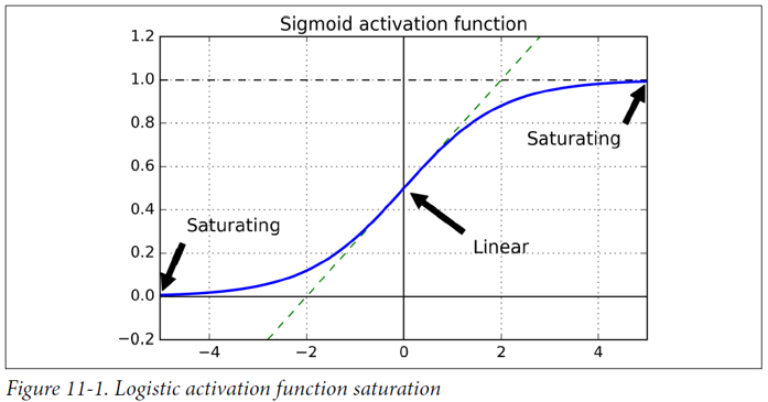 - 세이비어 글로럿과 요슈아 벤지오의 논문 “Understanding the Difficulty of Training Deep Feedforward Neural Networks”(2010)에서 다음과 같은 문제점을 제시한다.